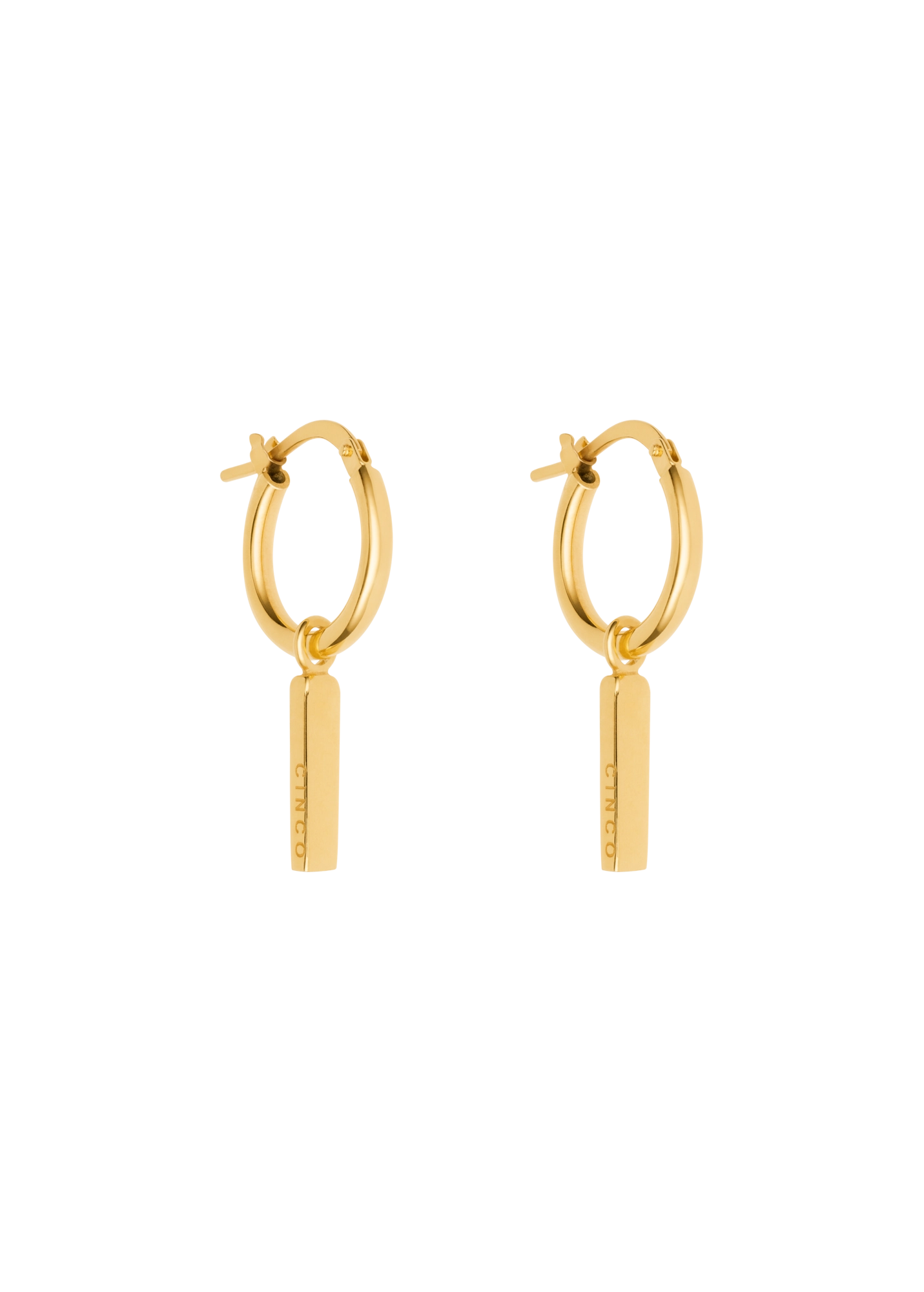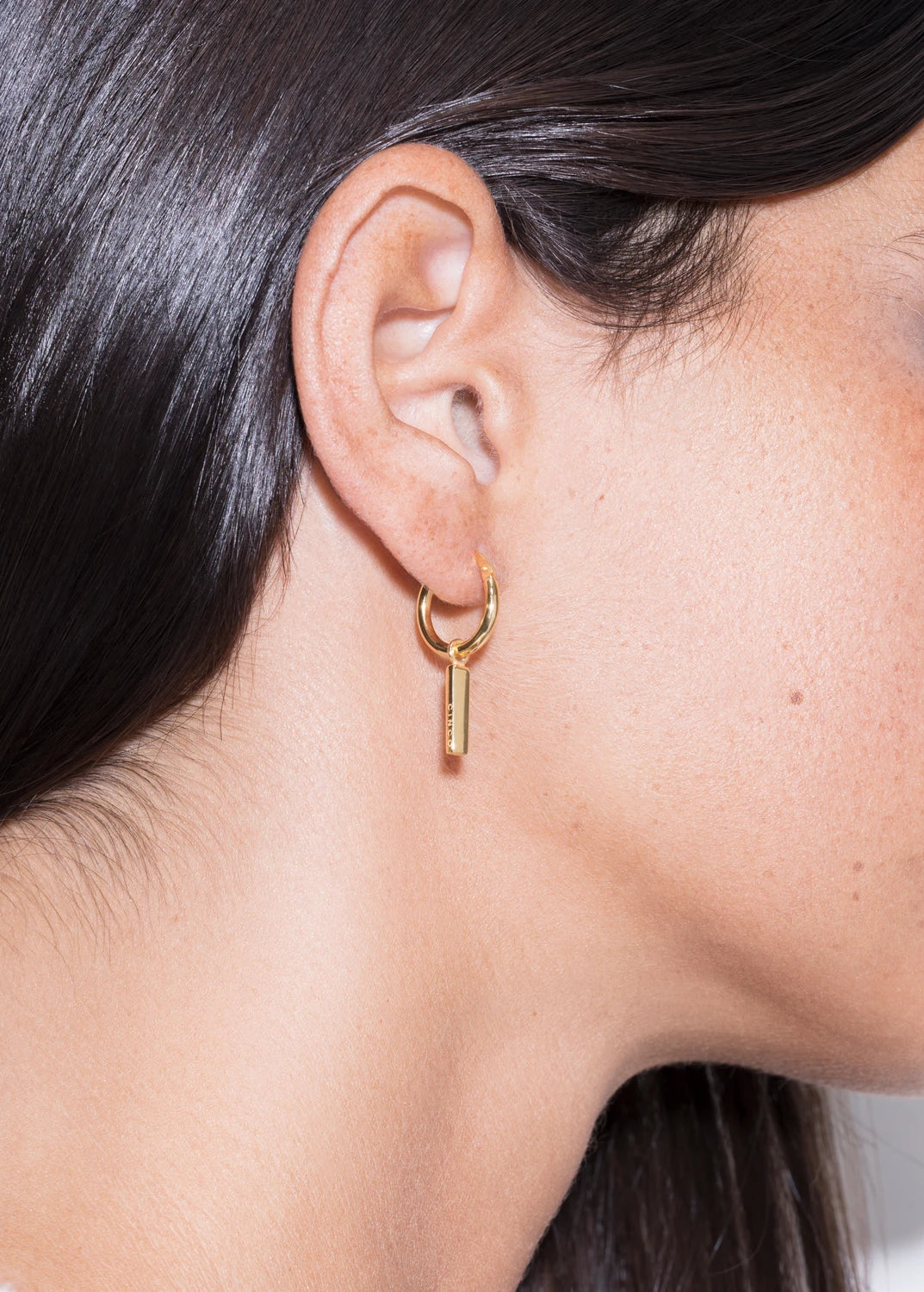 Bela Huggies — la simplicité qui vous accompagne partout. Fabriquées en argent sterling 925, avec une finition en rhodium blanc ou en plaqué or jaune 24 carats, ces boucles d'oreilles réinterprètent le classique huggie avec un charm minimaliste vertical gravé avec la précision caractéristique de CINCO.