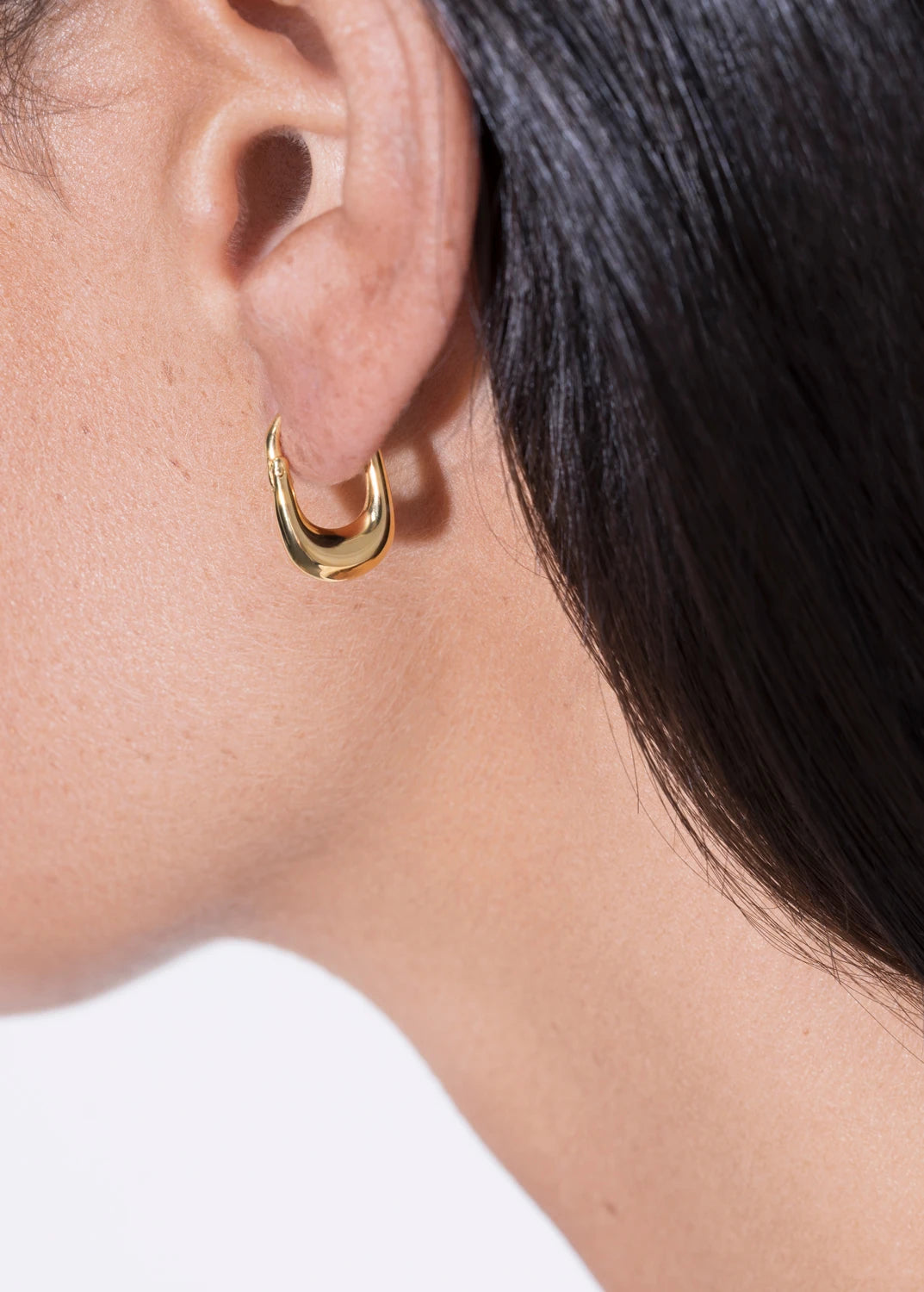 Fabriquées en argent sterling 925, avec une finition en rhodium blanc ou en plaqué or jaune 24 carats, ces boucles d'oreilles redéfinissent le classique huggie grâce à leurs courbes sculpturales et leurs proportions fluides.