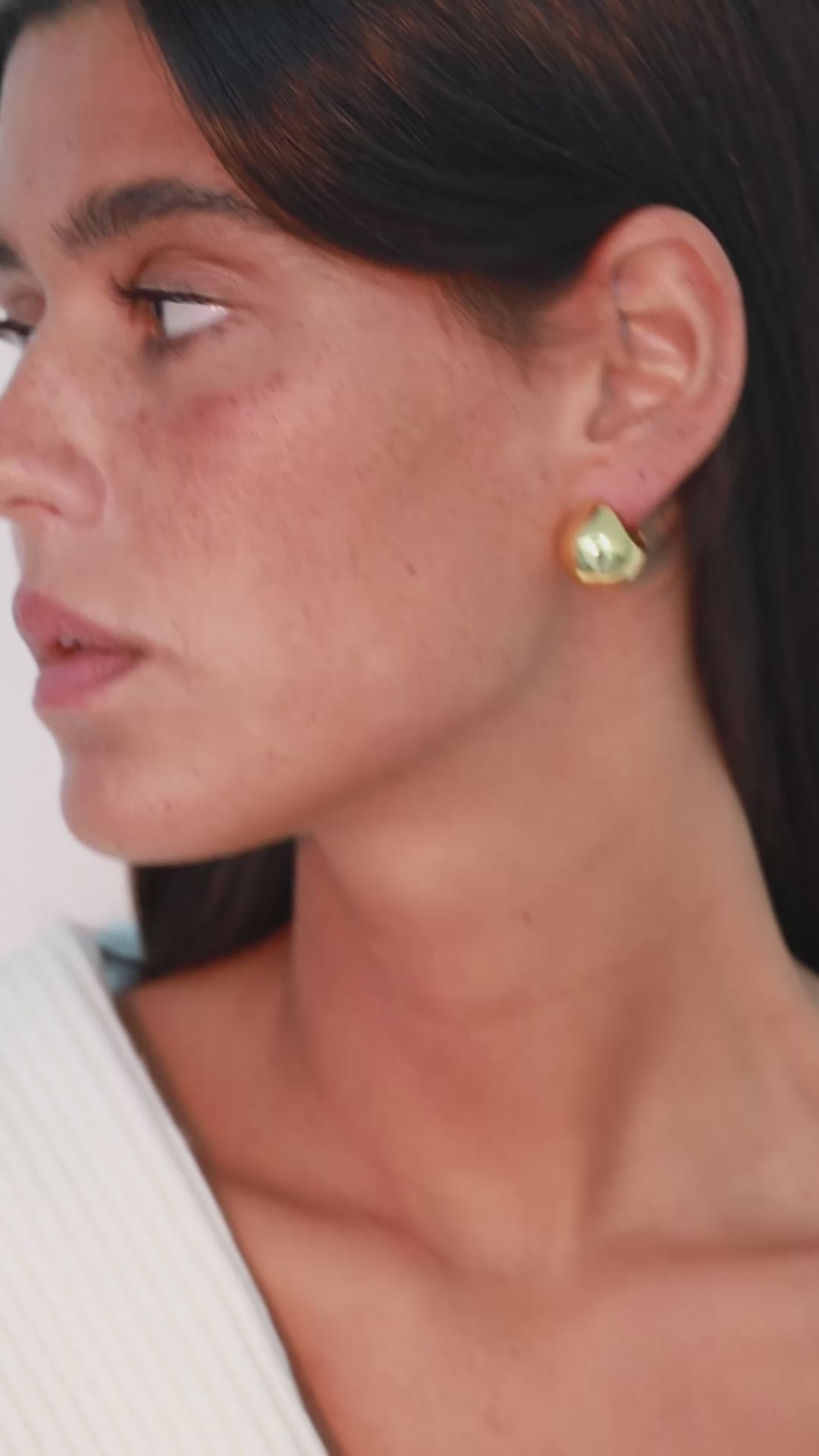 Les boucles d'oreilles Tomo réinterprètent le minimalisme à travers le volume — douces, fluides et magnifiquement proportionnées. Leur design est à la fois organique et architectural, incarnant le mélange caractéristique de force et de sensualité de CINCO.